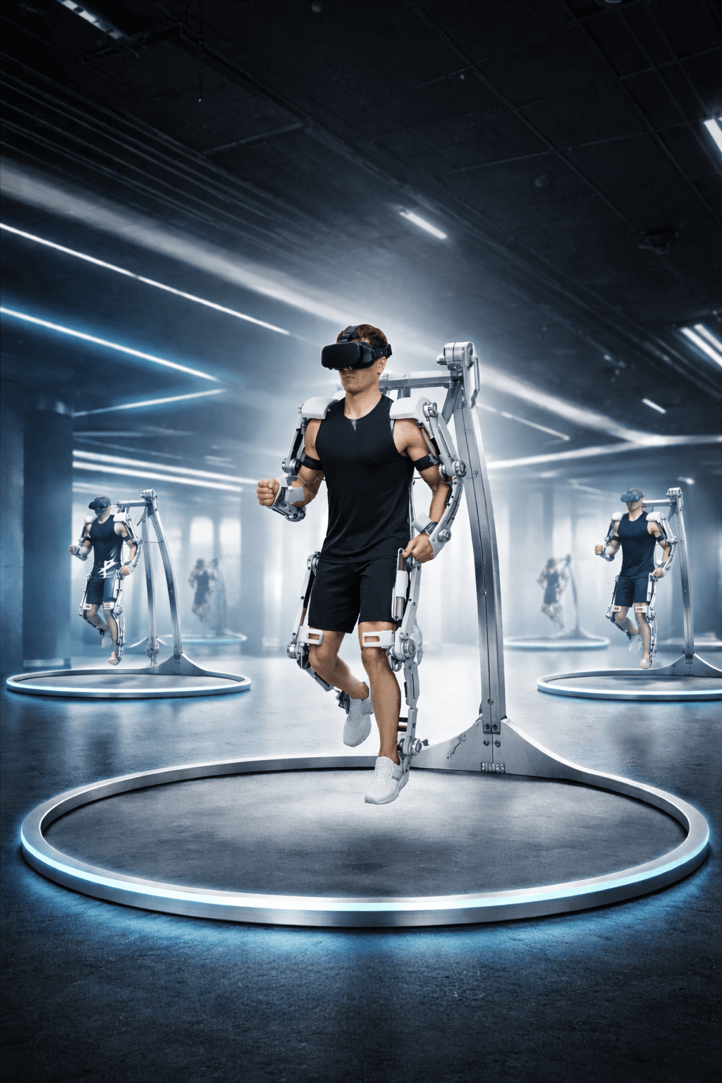 The suit's motors create resistance that mirrors your in-game effort. You enjoy the game, your muscles do the work, the app tracks your strength progress.